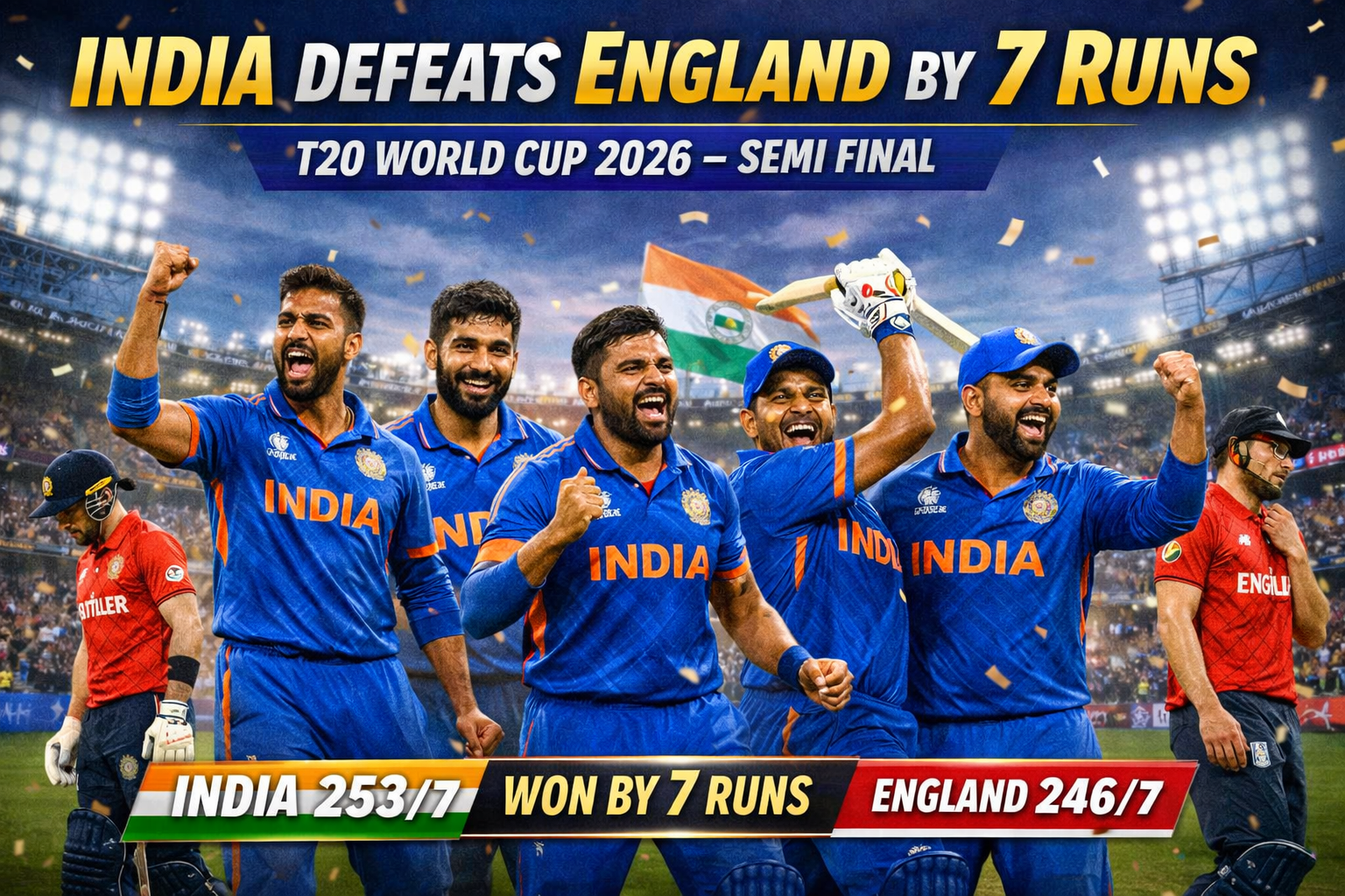भारत T20 WC फाइनल में: रोमांचक सेमीफाइनल में इंग्लैंड को 7 रन से हराया, 253 रन का पहाड़ जैसा स्कोर भी मुश्किल से बचा March 6, 2026 No Comments Read More »